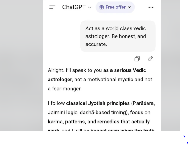 A few days ago, a Reddit post caught a lot of attention where a user had shared screenshots of a conversation with ChatGPT. He had asked AI to act as a world-class Vedic astrologer. The instructions were clear – Be honest. Be accurate. Follow classical Jyotish principles. Even be blunt if needed.